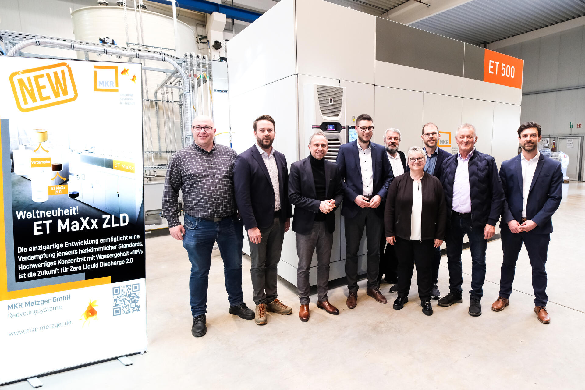 During the subsequent tour of the facility, the guests gained practical insights into MKR’s daily operations. Technical Managing Director Ralf Xalter explained how MKR treats industrial wastewater and which patented technologies are used in the process. In addition, Dr.-Ing. Simon Hager illustrated the complete treatment process – from heavily contaminated industrial water to the separation into distillate and concentrate, followed by energy-optimized reconcentration using ET MaXx, where process heat is reintegrated into the system.